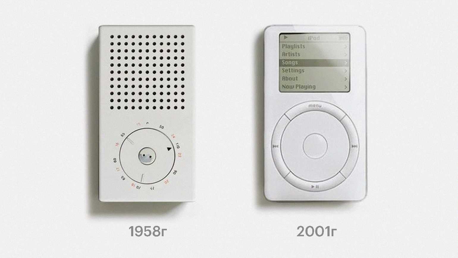 Карманное радио Braun T3 1958 года выгодно отличалось от конкурентов простым дизайном. По наблюдениям специалистов, именно эта модель вдохновила Apple на дизайн iPod 2001 года.