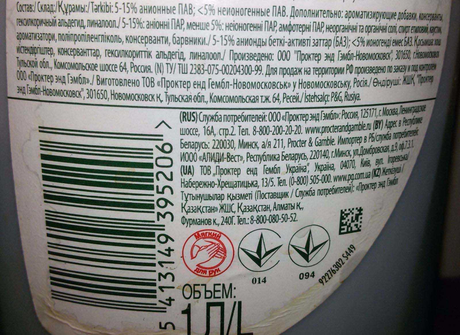 Главный вопрос, который волнует всех без исключения: вредно ли мыть посуду Fairy. Результаты официальных исследований моющих средств размещены в открытых источниках. Состав моющего средства Fiary соответствует нормам ГОСТа: