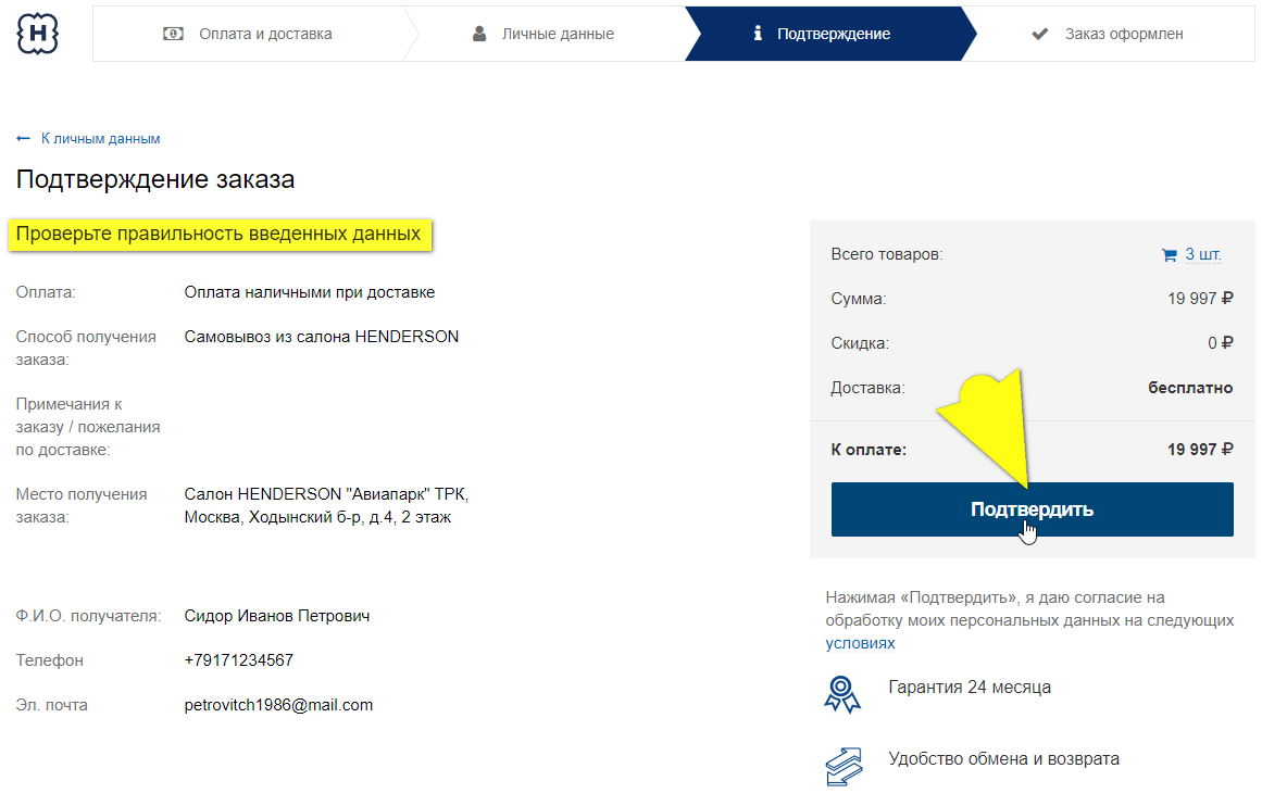 Проверьте правильность заполненной информации прежде чем подтвердить свой заказ.