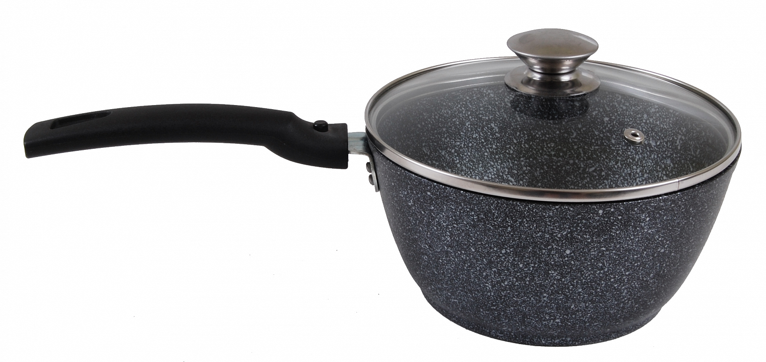Универсальная сковорода имеет литую, алюминиевую основу. Толщина дна и стенок от 4,5 до 6 мм. Антипригарное покрытие обладает повышенной износостойкостью и сделано по немецкой технологии, выдерживает температуру до 450°.