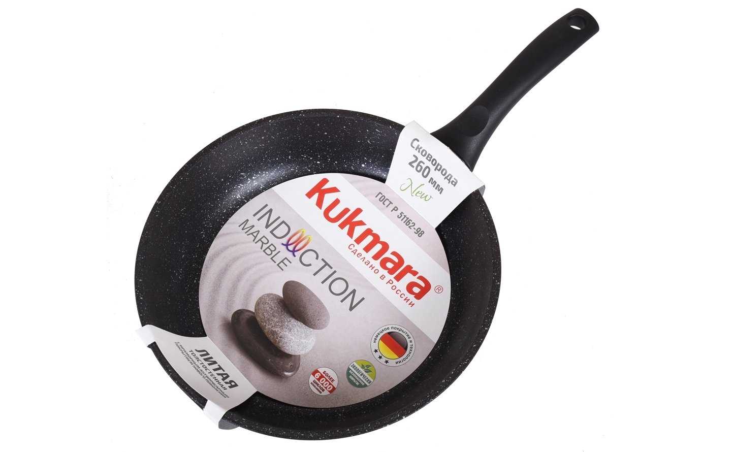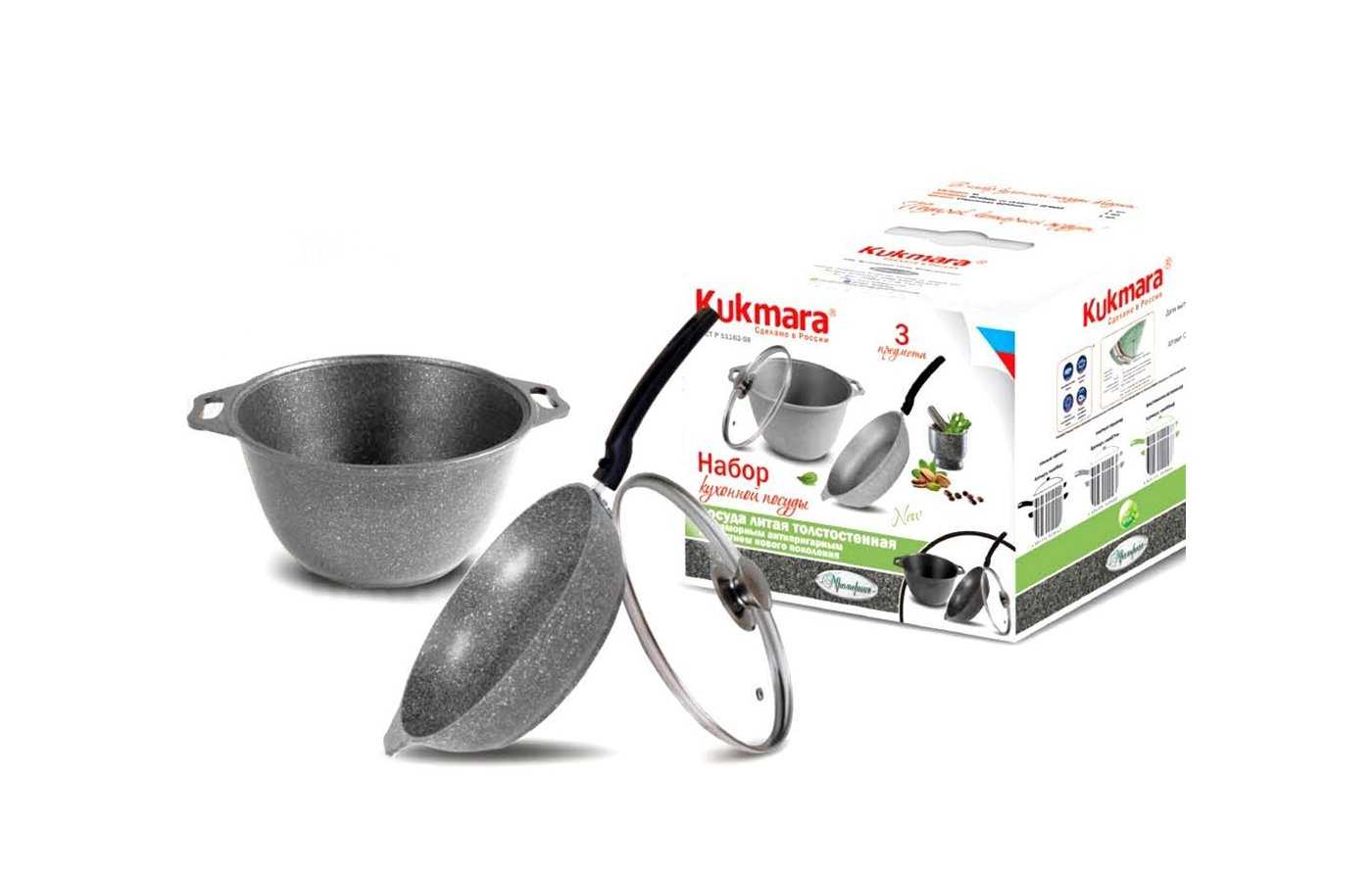 Посуда Kukmara с противопригарной поверхностью отличается несколькими особенностями. В первую очередь она устойчива к повреждениям и способна служить долгое время. Толщина стенок и дна достигает 6 миллиметров. Подобные изделия не меняют форму в процессе использования. А тепло от варочной панели распределяется равномерно по всей поверхности емкости.