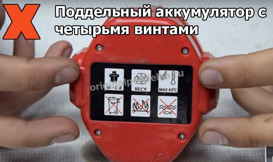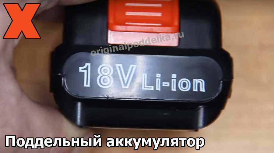 Оригинальное изделие оснащается литие-ионным аккумулятором с маркировочной наклейкой. Один винт будет запломбирован, высокотоковые элементы поставляются компанией Sony или LG, мощность батареи 10.8 вольт и емкость 1.5 Ампер в час.