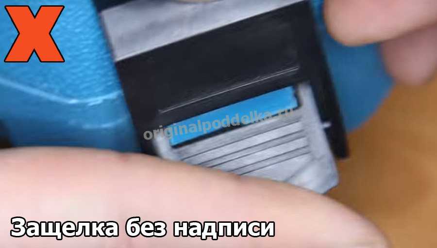 Рельефная надпись остается на фирменной болгарке даже после стирания с поверхности краски. У реплик под наклейкой ничего нет.