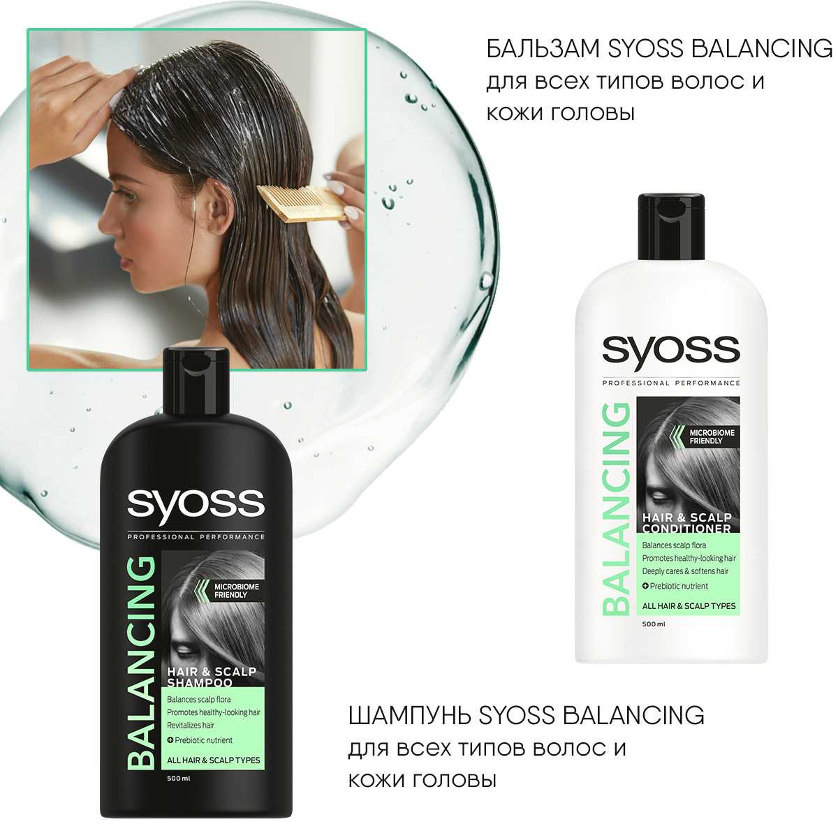 Очень важно, что шампунь и бальзам из линейки Syoss Balancing питают ее микробиом и не повреждают естественный защитный слой
