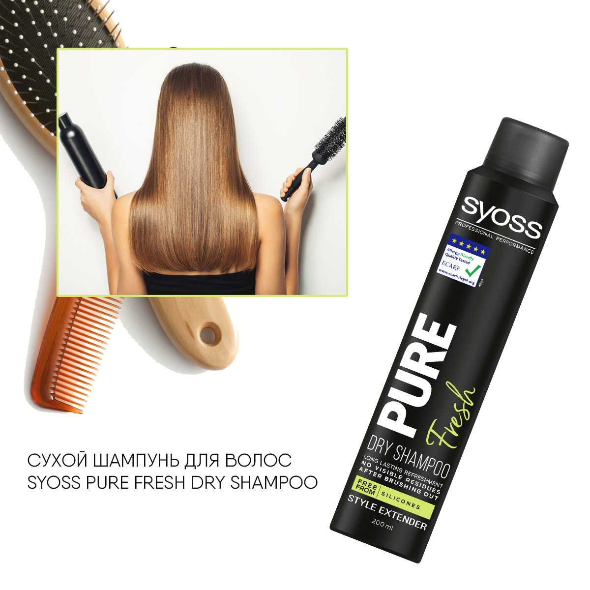 Сухой шампунь — пожалуй, самый незаменимый продукт. Он готов выручить в любую минуту, когда нет возможности помыть волосы обычным способом. Со Syoss Pure Fresh Dry Shampoo вы легко вернете прическе свежесть, устраните жирный блеск и будете выглядеть как всегда восхитительно. Средство не содержит сульфатов, силиконов, парабенов, а его vegan-формула не вызывает аллергию, поэтому оно подходит даже для тонких, ломких, ослабленных волос.