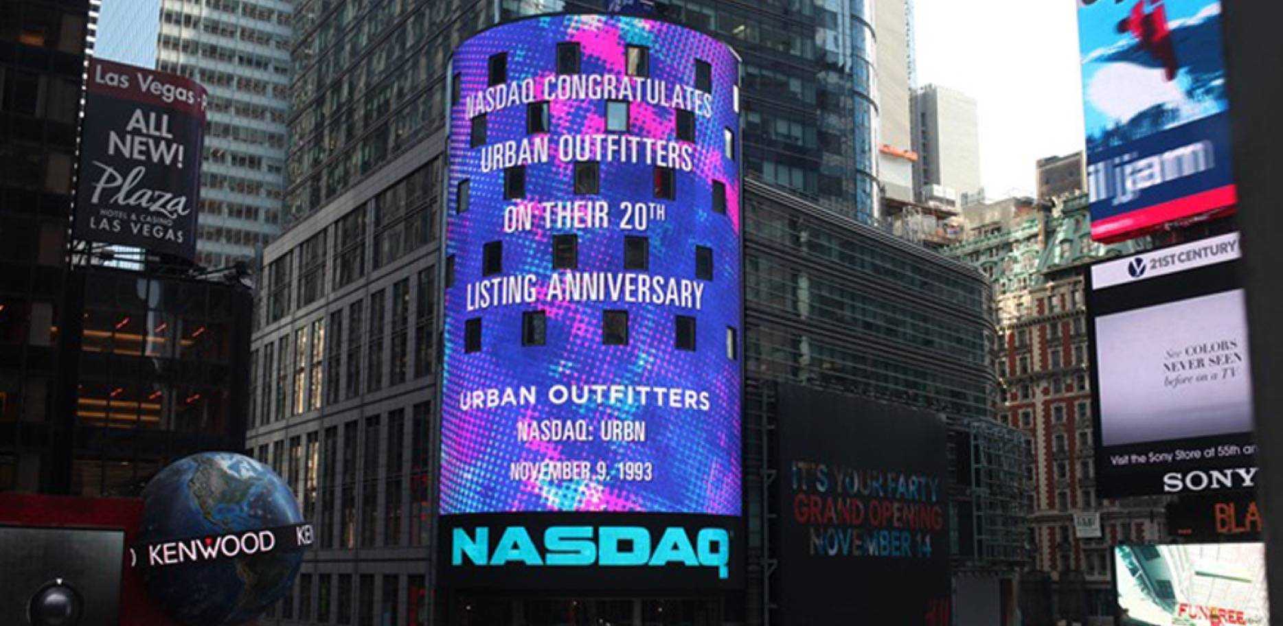 9 ноября 1993 года компания Urban Outfitters Inc. вышла на NASDAQ под символом URBN с ценой в $18 за акцию. Вторая половина 90-х ознаменовались стремительным ростом — был открыт первый магазин в Лондоне, что положило начало европейской экспансии UO.