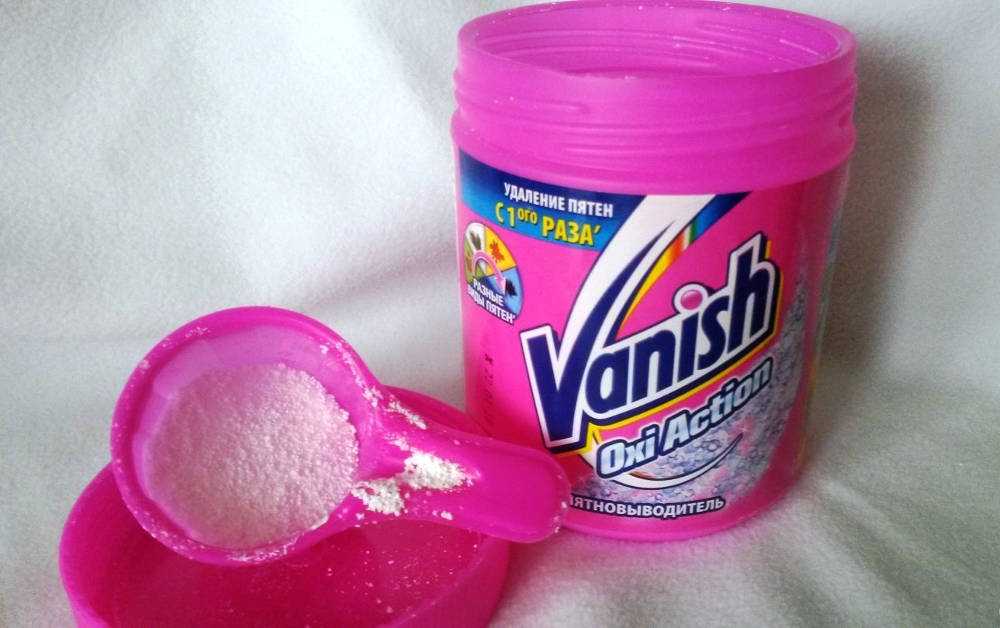 - Vanish Gold Oxi Action: кристальная белизна (порошок) для белого белья, стоимость банки, содержащей 0,5 кг средства, составляет 600 рублей;