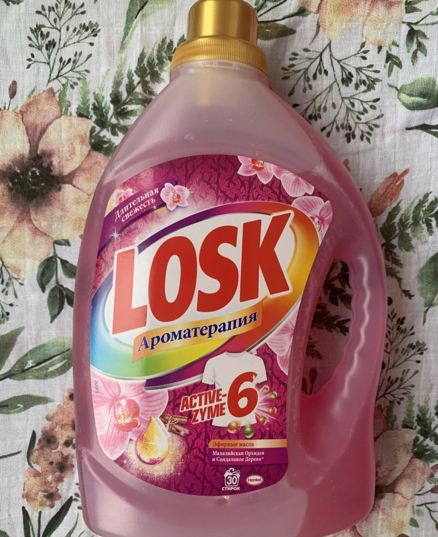 Формула, по которой разрабатывался состав Losk «С орхидеей», позволяет справляться с любыми пятнами, вне зависимости от типа ткани. Средство прекрасно раскрывает свои качества при любом температурном режиме и уровне жесткости используемой воды.