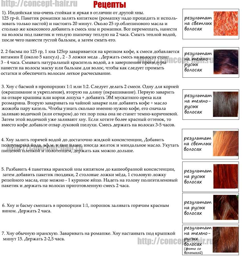 Хороших рецептов окрашивания хной очень много. Вот некоторые самые популярные из них: