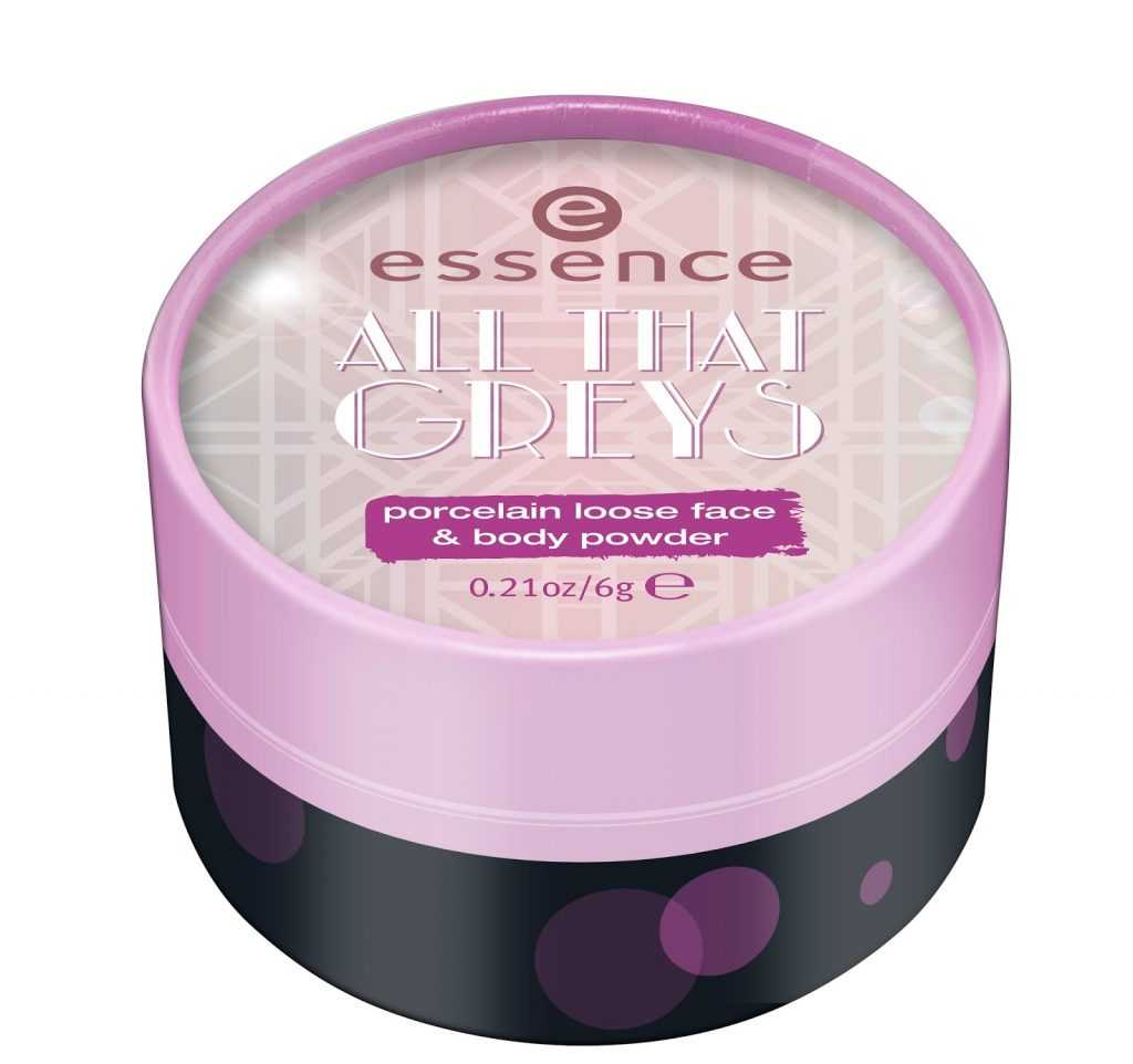 Рассыпчатая пудра обладает более легкой консистенцией. Она невероятно быстро наносится и дает максимальное выравнивание. Отличным вариантом является пудра бренда Essence. Бюджетное средство производится немецкой компанией. В ее составе присутствуют светоотражающие частицы, которые обеспечивают эффект мерцания. Косметика относится к линии Allthatgreys, которая разработана для вечерних выходов. После применения пудры кожа приобретает ровный тон с легким мерцанием.