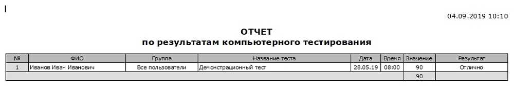 - Отчет по пользователю. Показывает, как выбранный пользователь справился с тестами и сколько баллов набрал.