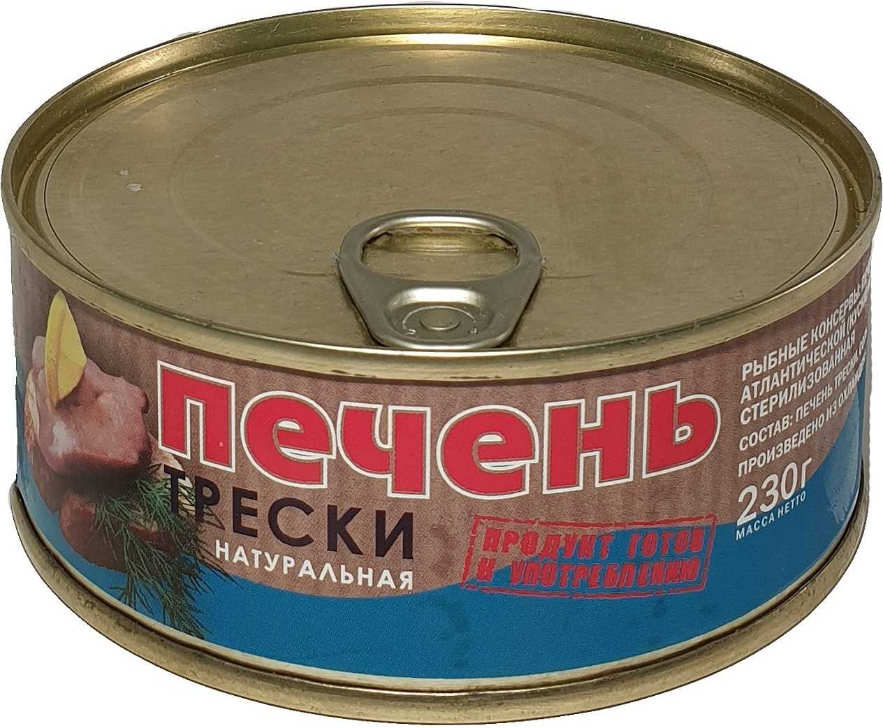Консервы свежие и богаты омега-3. Цвет как самой печени, так и жира в норме, консистенция сочная и нежная, нет посторонних привкусов или запахов. Вес — 230 г.