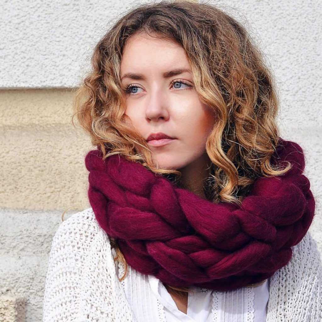 Объемный вязаный шарф, однотонного цвета, должен находиться в коллекции любой модницы следящей за последними тенденциями моды. Также шарф текстильного производства удачно дополнит коллекцию аксессуаров и отлично разбавит серость и однотонность пасмурных дней.