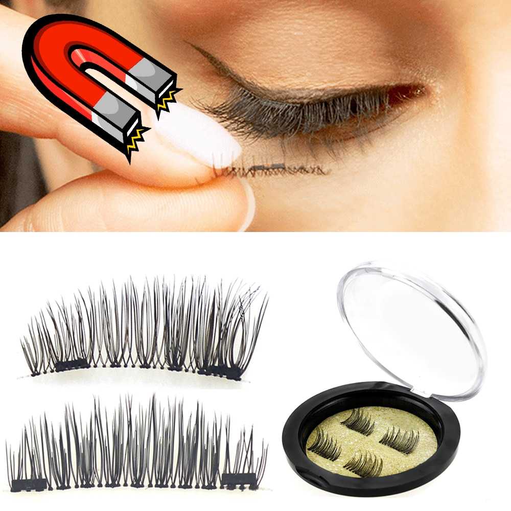 Совсем недавно появившиеся в продаже по характеристикам и назначению не отличаются от обычных накладных, кроме способа крепления. В упаковке находятся 4 части – по 2 на каждый глаз. На ленте расположены магниты, которые, при нанесении накладок на глаза, притягиваются друг к другу и образуют прочное соединение. Собственные реснички находятся между двумя рядами искусственных.