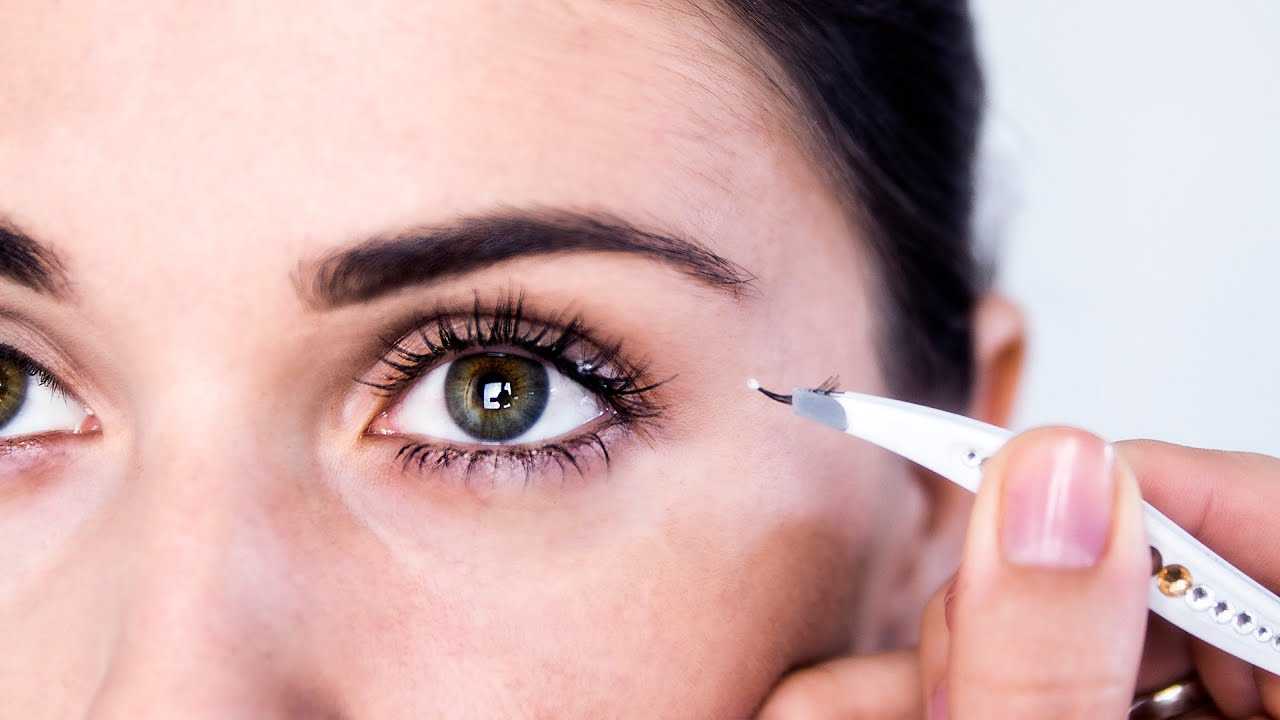 Перед наклеиванием необходима примерка, чтобы определить необходимую длину ленты и отрезать лишнюю часть с обеих сторон. Используя щипцы, завить свои ресницы, чтобы придать им нужный изгиб и они были неотличимы от накладных. Нанести клей на ленту, в течение нескольких секунд дать ему загустеть и наклеить на веко, начиная с внешнего уголка глаза. Палочкой или зубочисткой, плотно прижимая ленту, провести по линии фиксации для закрепления результата. Место крепления можно замаскировать при помощи подводки и туши.