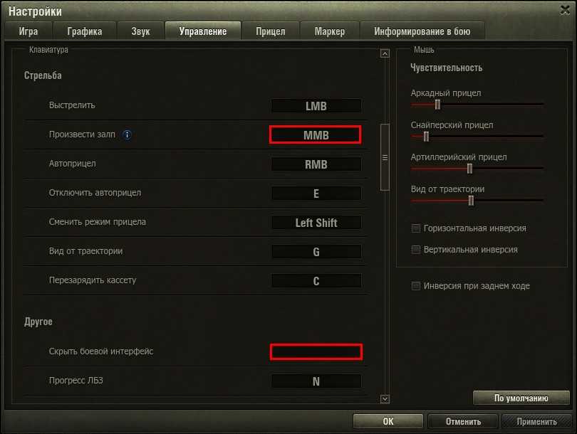 Обязательно нужно переназначить клавишу «Произвести залп» для стрельбы дуплетом на двустволках (я назначил на колесико мыши). Также я открепил клавишу «V» от функции «Скрыть боевой интерфейс», так как при ее случайном нажатии пропадает вся информация с экрана (мини-карта, панели команд и все остальное).