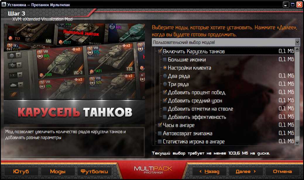 Следующие опции чисто информативные и не влияют на геймплей, такие как процент побед и средний урон на каждом танке, отображение часов в ангаре и др.