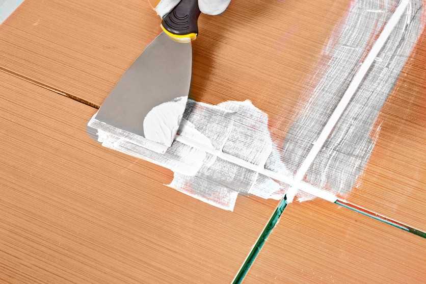 Готовый состав металлическим или резиновым шпателем втирают в швы облицовки