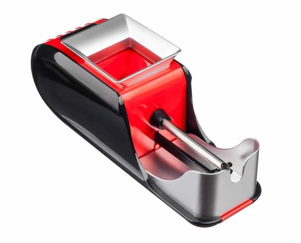 Это инжекторный аппарат, выполненный из пластика в разных цветах. Используется для набивания сигаретных гильз диаметром 8 мм. Машинка весит всего 30 грамм и имеет размеры 3,5*11,5*2,5 см. Верхняя часть корпуса, не смотря на пластиковую поверхность – долговечна. Конечно, это не полноценная машинка для папирос, но со своей задачей в набивании гильз табаком, справляется на ура. Благодаря цветовому ассортименту, машинку можно подобрать под цвет одежды. Стоимость прибора составляет всего около 110 рублей и при этом прослужит он не менее года.