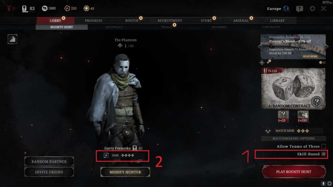 Справа снизу на своём экране вы можете увидеть специальную галочку «Skill-based» на экране лобби как для режима «Охота за трофеями» (включена по-умолчанию), так и для «Быстрой игры» (отключена по-умолчанию). Опция не может быть отключена, если игрок не завершил тренировочный режим или находится в группе из случайных игроков.