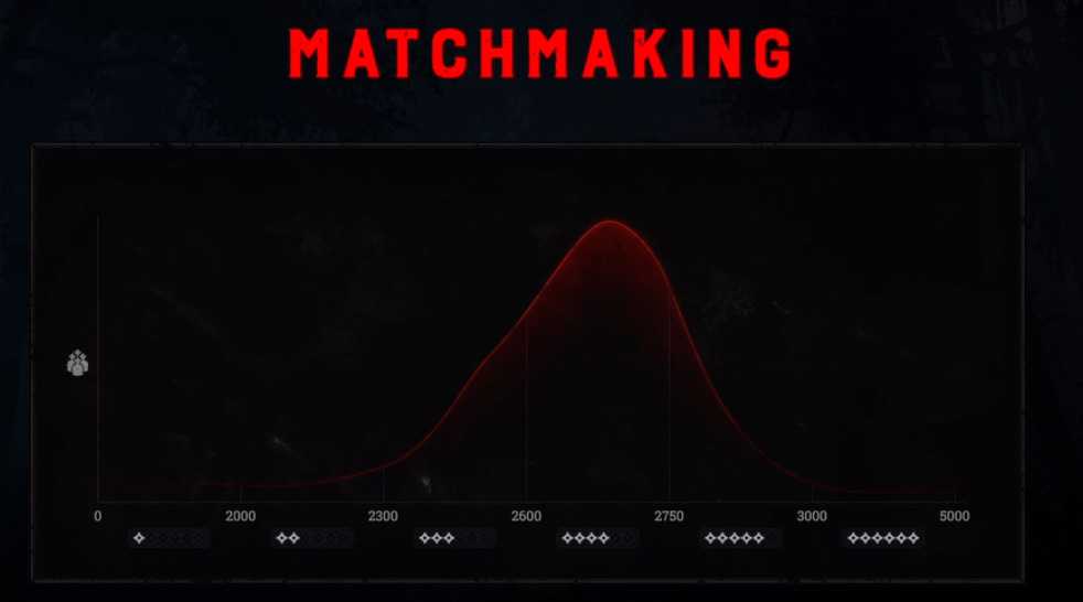Уровни MMR визуально представлены звёздами. MMR это ваш персональный PVP-рейтинг (игрок против игрока), который может иметь значение в диапазоне от 0 до 5000. 1 звезда означает, что ваш рейтинг находится в диапазоне 0-2000, а 6 звёзд — между 3000-5000. Большинство игроков находятся в диапазоне 2600-2800, т.е. имеют рейтинг 3-5 звёзд (большинство как 4-звёздочный коньяк). Это наглядно показано на диаграмме.
