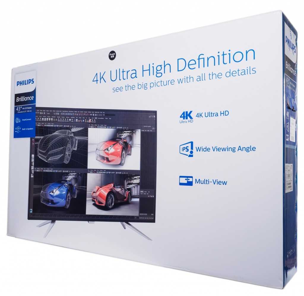 Модель с диагональю экрана в 42,5 дюйма на IPS-матрице. Разрешение составляет 3840х2160 точек, максимальная частота обновления кадров – 80 Гц, яркость – 300 кд/кв. м, время отклика – 5 мс. Пользователь получит огромную рабочую поверхность с детальной картинкой, но четкость не будет рекордной. Плотность пикселей в этом мониторе примерно такая же, как у моделей на 27 дюймов с FullHD-разрешением. Из-за размеров устройства в качестве подставки используются 2 металлические ножки. Это ограничивает возможности регулировки, но зато есть VESA-крепление (20х20 см). На задней стороне корпуса размещен USB-хаб на 4 порта (поддерживают стандарт 3.0 и скоростную зарядку), 2 HDMI, 2 DisplayPort, VGA и аудиовыход на 3,5 мм. Есть встроенная акустика мощностью 7 Вт, но она не выделяется качественным звучанием.