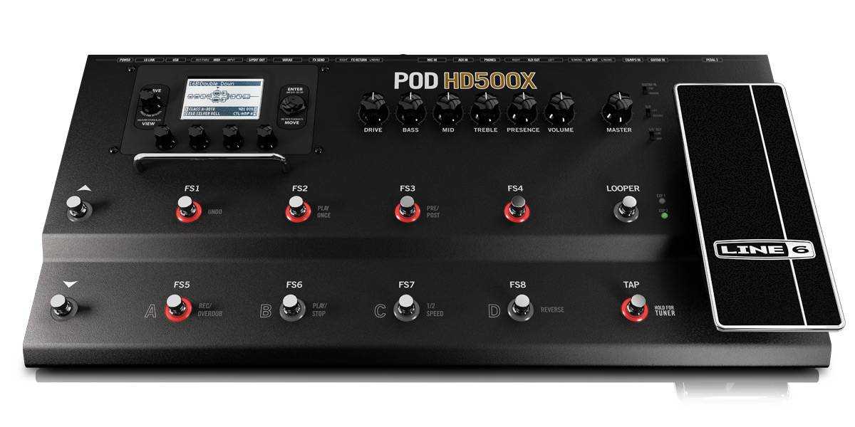 Цифровой пред в отдельном корпусе называют гитарным процессором. На фото – популярный сегодня процессор «LINE 6» POD HD500X.