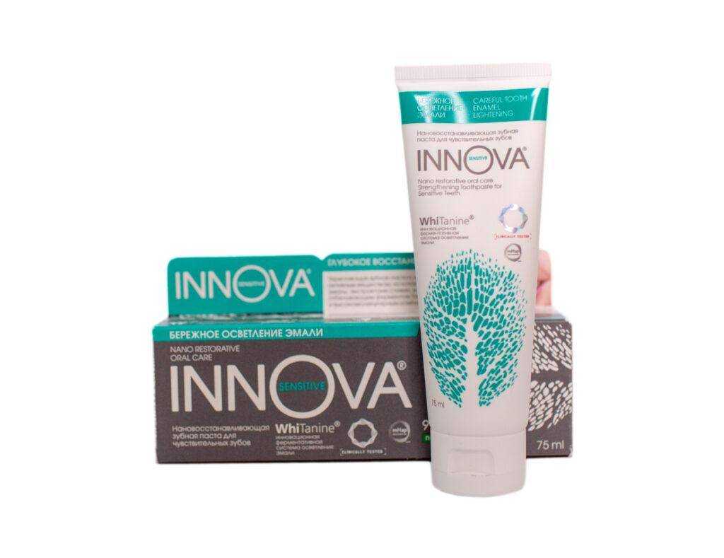 Паста, гарантирующая снижение чувствительности десен уже после первого применения. Ее основная направленность – глубокое восстановление эмали. Производителем выступает российский бренд «Innova».