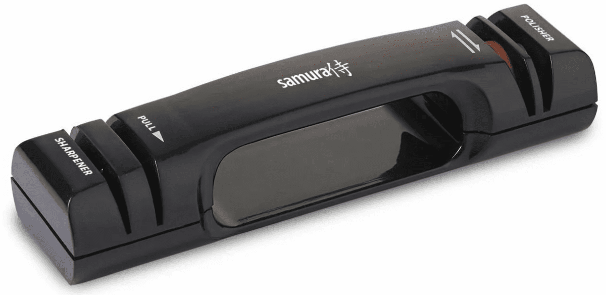 Рукоять сделана из высококачественного пластика, а точильный элемент представлен алмазным абразивом. Позволяет затачивать стальные и керамические ножи, ножницы и рыболовные крючки. Проста в использовании и уходе, но требует времени на придание остроты инструменту.