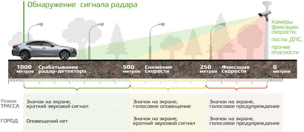 Дальность обнаружения. Водитель будет вовремя уведомлен о КПП и успеет сбросить скорость до приближения к зоне действия радара сопровождения.