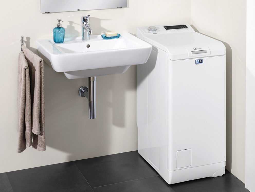 Для компактных помещений покупатели предпочитают подбирать узкие стиральные машины с вертикальной загрузкой. Однако их трудно встраивать в кухонную мебель, так как откидывающаяся вверх крышка не позволяет закрыть технику столешницей. Автоматы фронтального типа обладают более серьезными габаритами, однако они удобны для монтирования в мебельный гарнитур.