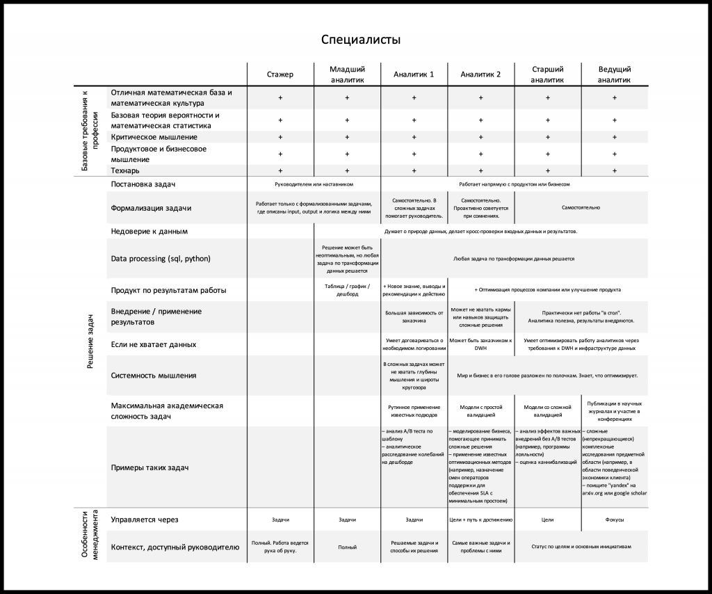↓ Полная версия таблицы с уровнями аналитиков данных: