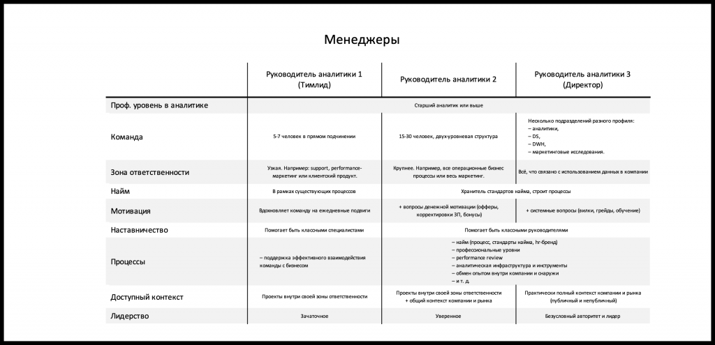 Далее мы будем рассматривать две ветви развития аналитиков — как специалиста и как менеджера аналитиков.