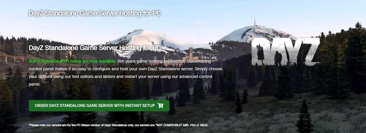 GTXGaming предлагает хостинг автономного игрового сервера DayZ для ПК. Его панель управления легко настроить, и вы можете выбирать параметры с помощью ползунков и текстовых редакторов для перезагрузки сервера. Предлагают карты Ливонии и Чернаруси с игровым сервером GTXGaming.