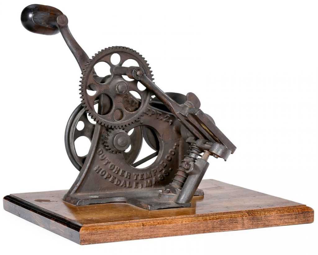 Позже, в 1855 году, этот предмет запатентован уже в Америке и с 1860 года ее усовершенствовали: появился специальный держатель и очищающий элемент. В 1917 году создали инструмент с электрическим механизмом.