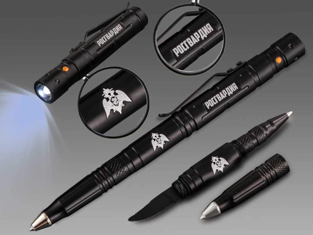 Мужчинам обязательно понравится ручка–трансформер, которая включает в себя функции фонарика, ножа и ручки