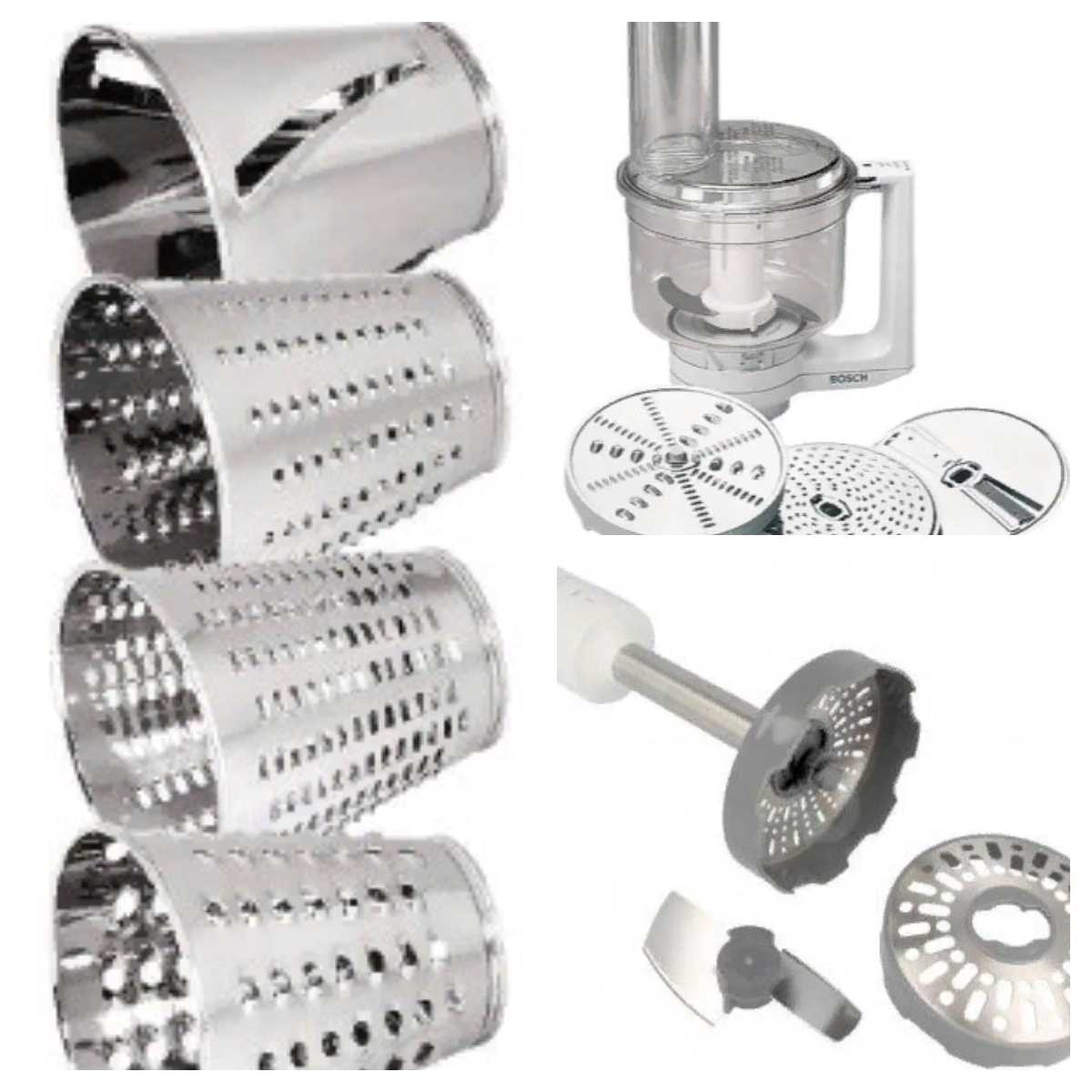 Одни комплектующие предусматривают измельчение зерен кофе, крупы и ядер орехов до состояния муки. Другие необходимы для шинковки овощей одинаковыми ломтиками и смешивания компонентов для жидкого теста.