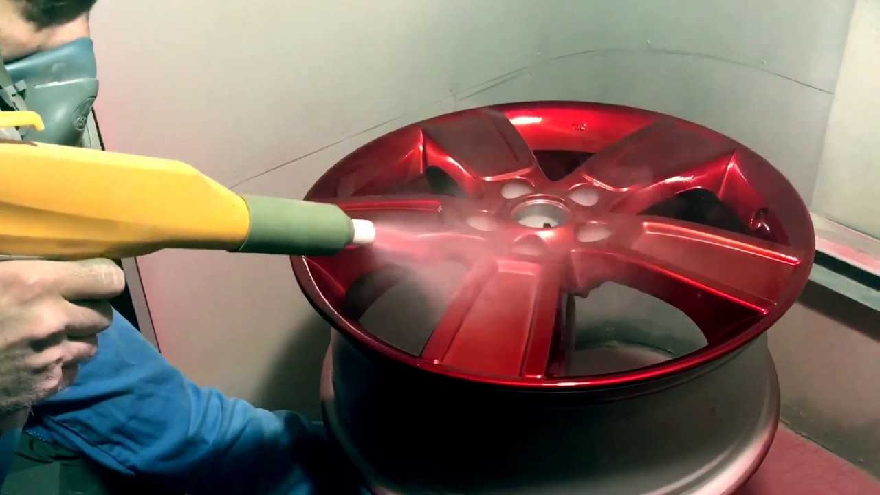 После нанесения деталь подвергают воздействию высокой температуры в специальной камере, где краска, оплавляясь, закрепляется на дисках. По сравнению с акриловыми материалами порошковая краска менее устойчива по отношению к механическим и химическим воздействиям. Однако этот вариант покраски часто предпочитают в силу быстрого нанесения и сравнительно экономного расхода. Порошковые материалы лучше всего подходят для обновления литых легкосплавных дисков.