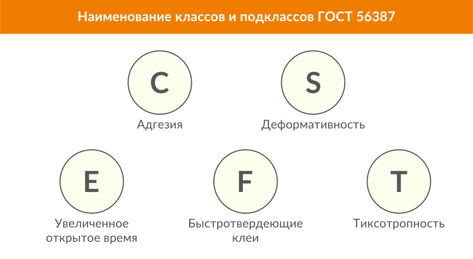 По ГОСТу основные характеристики клея имеют буквенное обозначение: