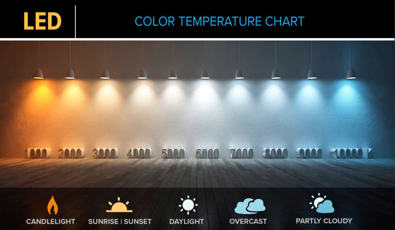 Цветовая температура измеряется в кельвинах. Чем выше это значение, тем холоднее свет.