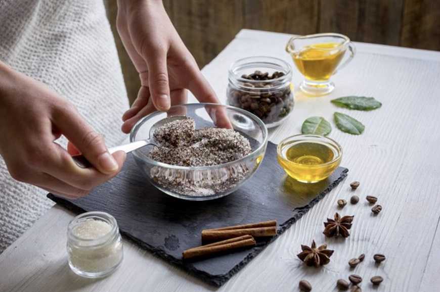 Помимо двух главных составляющих в домашний скраб добавляются эфирные масла для лечения или ароматизации средства. Смеси готовят как вручную, так и с использованием кухонной техники: кофемолки, мясорубки, блендера, миксера.