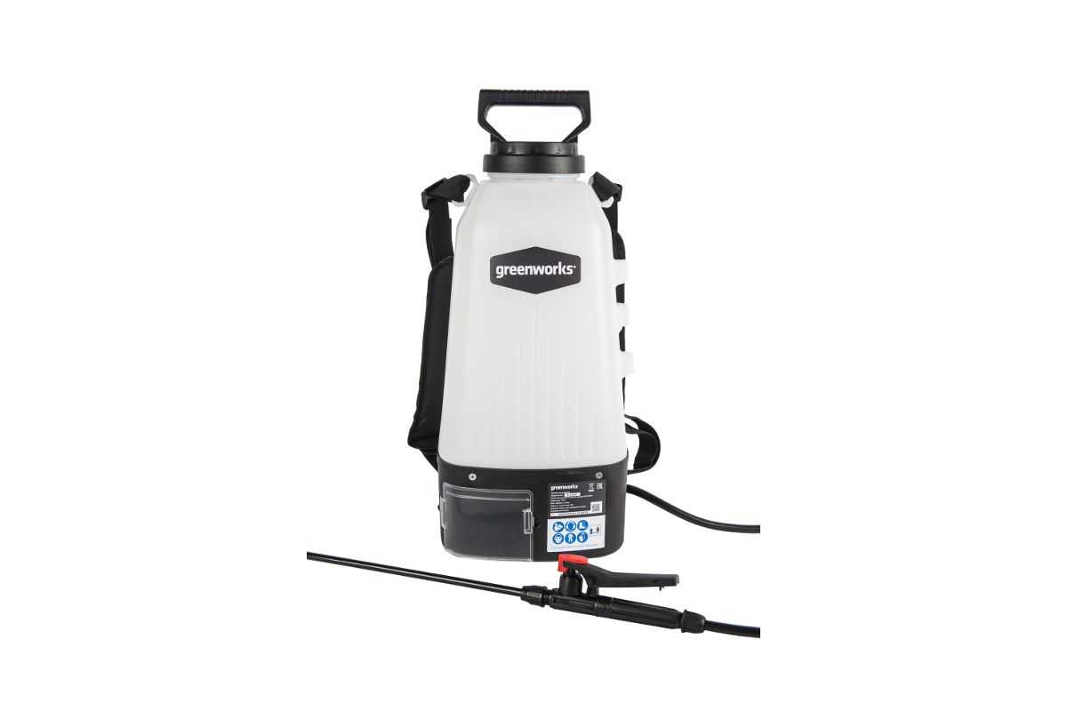 Этот опрыскиватель с баком на 7,5 л является лучшим среди аккумуляторных моделей в этом году. Отлично обрабатывает даже большие огороды/сады. Весит немного, обладает эргономичной конструкцией. Расход аппарата – 2,2 л за минуту. Питается от мощного аккумулятора на 24 В, выполнен из качественных материалов. Аппарат нельзя использовать для горючих/хлорсодержащих средств, а также кислот. Комплектуется четырьмя разными насадками.