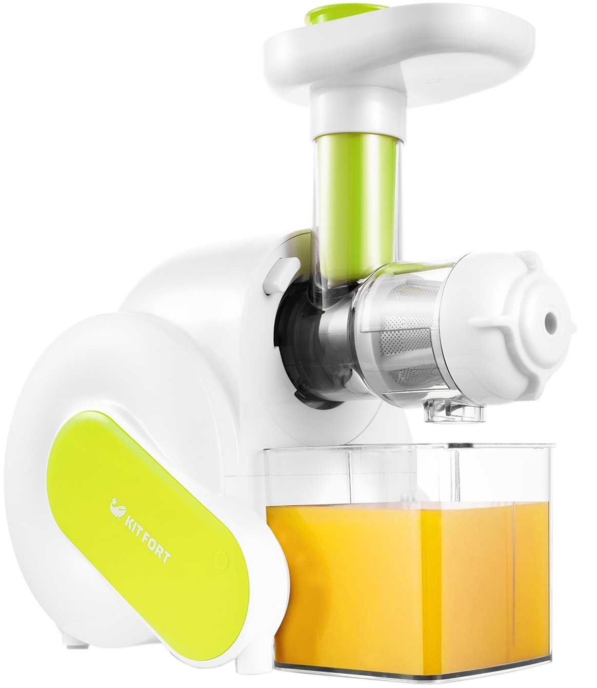 Мощная центробежная соковыжималка Kitfort KT-1112 позволяет использовать в виде сырья зелень, фрукты и овощи с плотной шкуркой или кожицей. При этом большое горловое отверстие дает возможность погружать сырье, нарезанное большими кусками. Оно попадает в основную часть соковыжималки, и при помощи центрифуги и терки с мелкими зубцами Kitfort KT-1112 измельчается. Что происходит после? До того, как сок оказывается в чаше, он проходит через фильтр, который устраняет жмых. Подобная схема действия делает эту модель одной из наиболее практичных и долговечных в подборке.