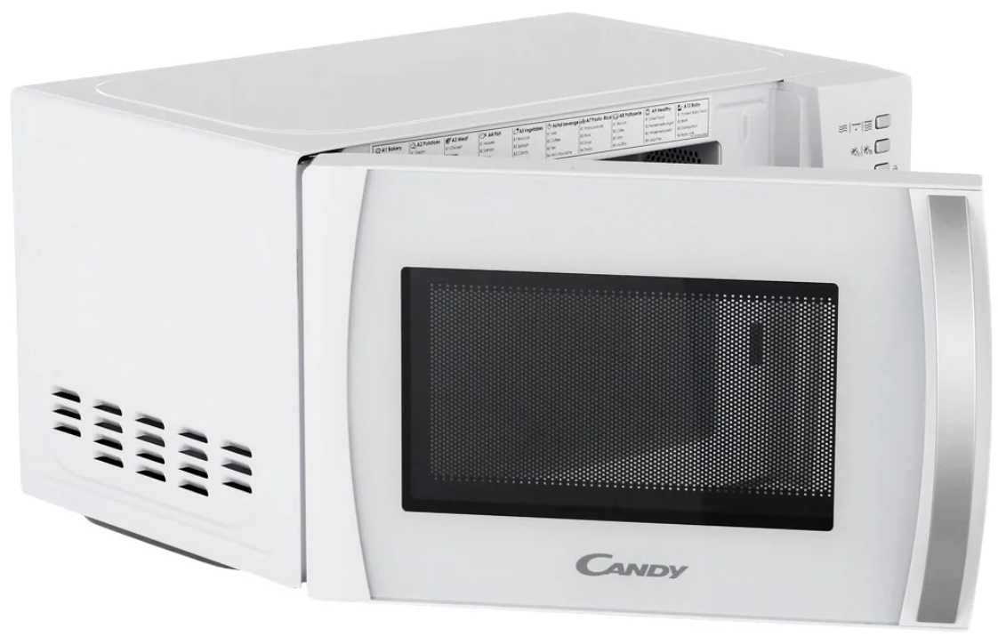 Строгое стильное оформление микроволновки формата мини станет прекрасным дополнением современного интерьера кухни-столовой. С правой стороны от дверцы с затемненным стеклом находится пульт с кнопками управления и тактильным круглым регулятором ввода времени, мощности и веса.
