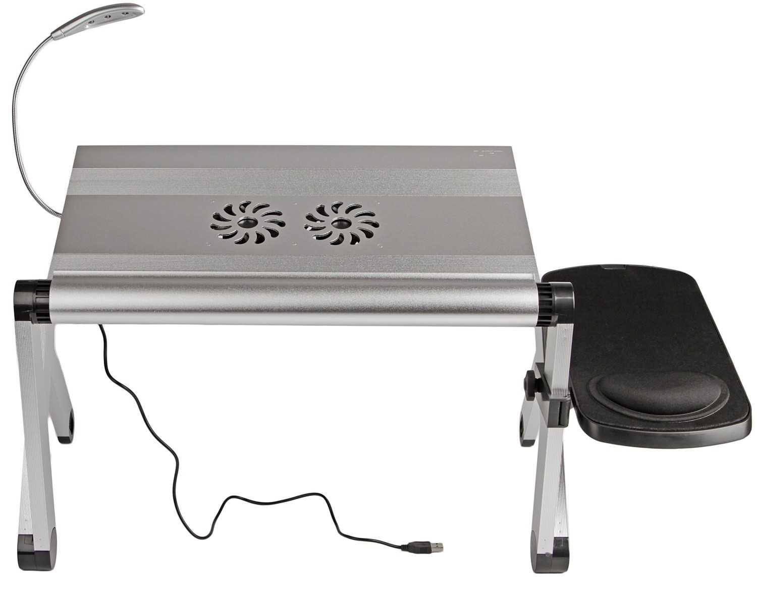 Подсветка – придает устройству стильный вид (свечение вокруг лэптопа). Подсветка бесполезна для работы с ноутбуком в темное время суток. Некоторые столики-подставки оснащаются гораздо более эффективной лампой.