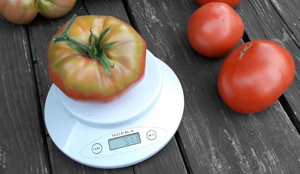 Король гигантов. Индетерминантный куст 1,7-1,8 м в высоту. Урожайность 7-8 кг с одного куста. Средний вес одного плода 350 гр. Красного цвета, круглый и приплюснутый. На вкус сладкие и сочные. Хороши для соков и соусов.