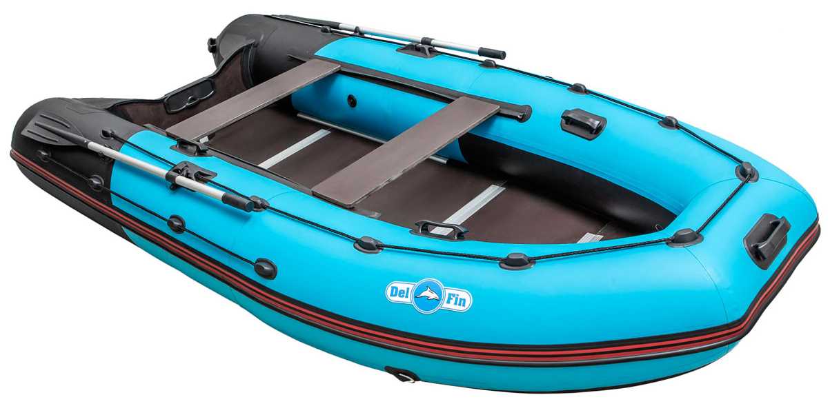 Судно включает в себя 3 надувных отдела, что гарантирует высокую безопасность в ситуации проколов. Транец вклеивается в корпус посредством усилителя транцхолдера. В комплектации также поставляется разборный пайол – жесткая съемная поверхность, которая обеспечит комфорт при передвижении людей по плавсредству.
