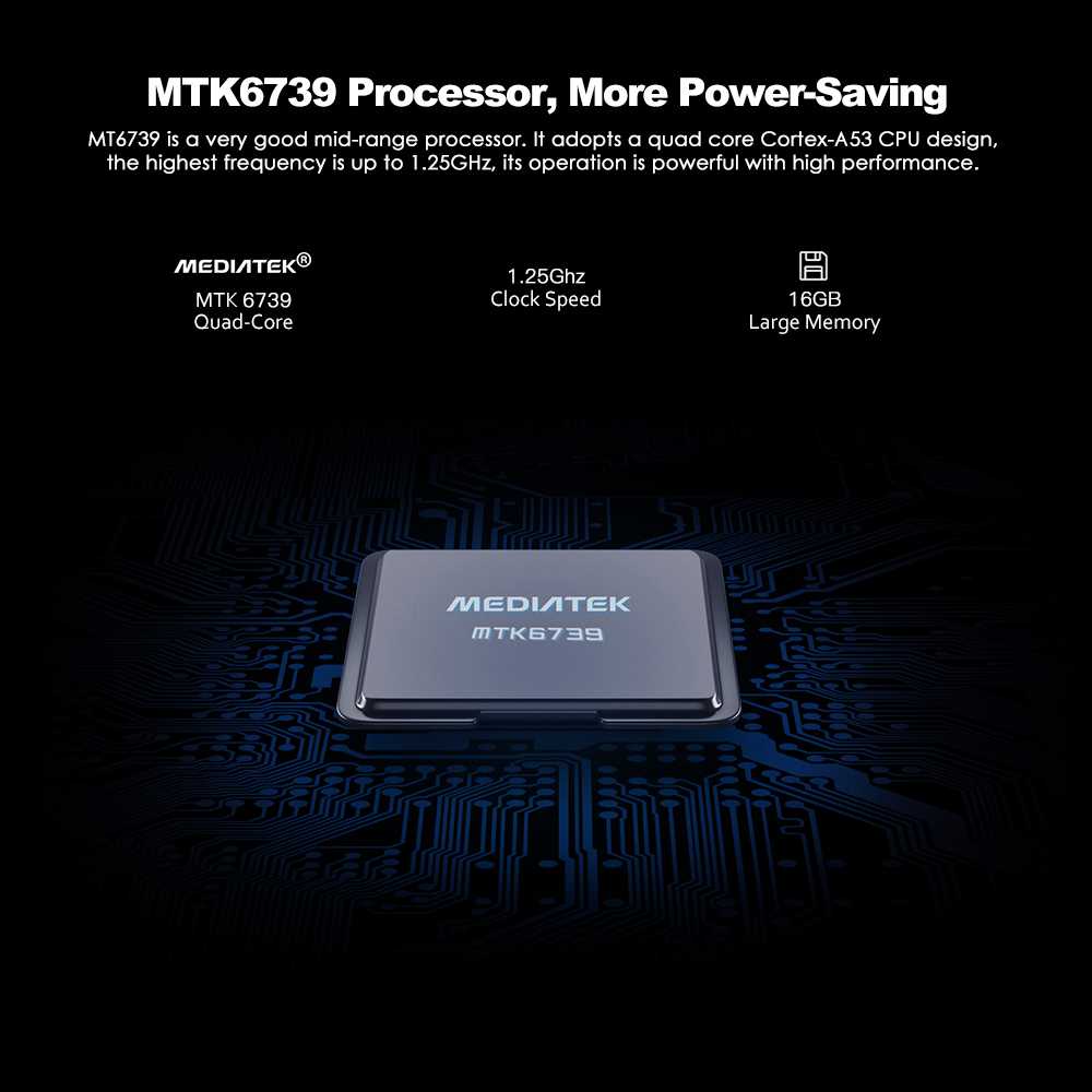 MT6739-это очень хороший процессор среднего диапазона. Он использует четырехъядерный процессор Cortex-A53, самая высокая частота до 1,25 ГГц, вычисления мощны и потребление энергии хорошо.