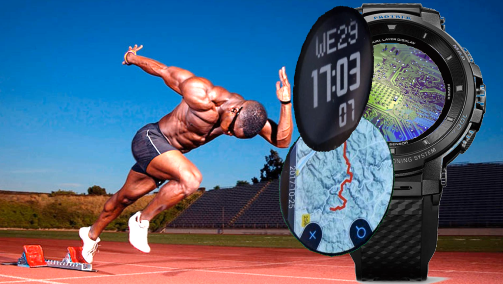 То, что сделало умные часы Casio уникальными, когда они выпустили, это их технология двойного экрана. Он имеет один обычный цветной экран, как и большинство других умных часов, но вторую монохромную рефракционную ЖК-панель сверху, чтобы постоянно отображать время.