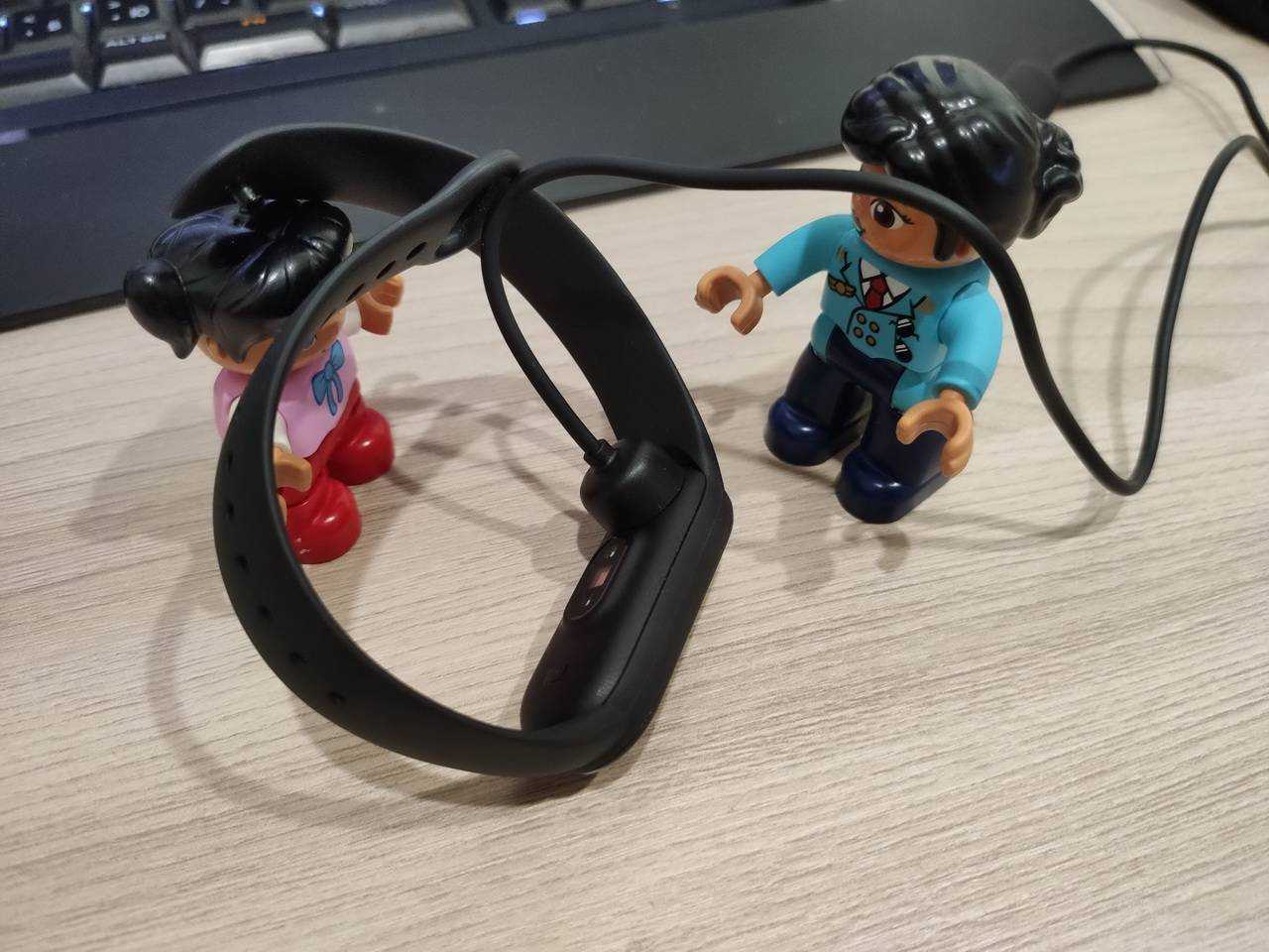 Зарядное устройство от Mi Band 5 на Mi Band 4 не держится: у новинки магнитный док. Капсула Mi Band 5, в свою очередь, не лезет в зарядку «четверки». Зато трекер самостоятельно притягивается на контакты с расстояния в 5 сантиметров, носить зарядное стало проще, да и ломаться или пачкаться оно будет реже.